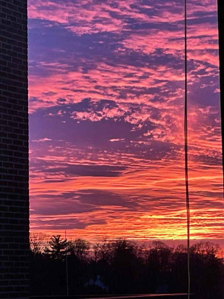 A soothing sunset outside of one of Mom’s many hospital rooms during another readmit, cord for the blinds and all. She texted this to me the night before her second surgery.